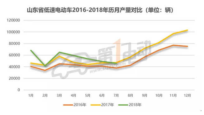 據(jù)山東省汽車行業(yè)協(xié)會統(tǒng)計,2018年7月,山東生產(chǎn)低速電動車46153輛,環(huán)比下降6.16%,同比下降2%。繼今年2月份之后,再次出現(xiàn)環(huán)比同比雙雙下降走勢。