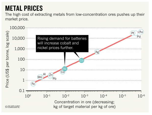 汽車制造商和政府預(yù)計(jì),到2025年,每年將生產(chǎn)1000萬到2000萬輛電動(dòng)汽車。如果每個(gè)汽車電池需要10公斤的鈷,到2025年,電動(dòng)汽車每年需要10 - 20萬噸的鈷——這是世界目前產(chǎn)量的大部分。同樣地,每年需要40 - 80萬噸鎳,占今天所用金屬的20-40%。當(dāng)卡車、公共汽車、飛機(jī)和船只改用電池供電時(shí),還需要更多的電力。