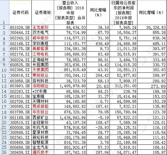 而在增幅榜單上排名最靠前的鈷企寒銳鈷業(yè),今年上半年實(shí)現(xiàn)凈利潤5.29億元,同比增長達(dá)288.97%。