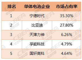 圖:2018年8月排名前五單體電池企業(yè)