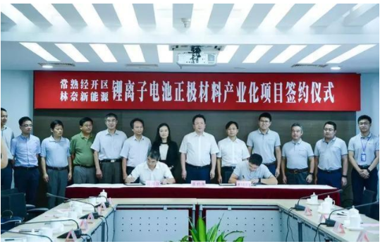 8月30日,蘇州林奈新能源有限公司的3萬(wàn)噸鋰離子電池三元正極材料項(xiàng)目與常熟經(jīng)濟(jì)技術(shù)開(kāi)發(fā)區(qū)正式簽約。