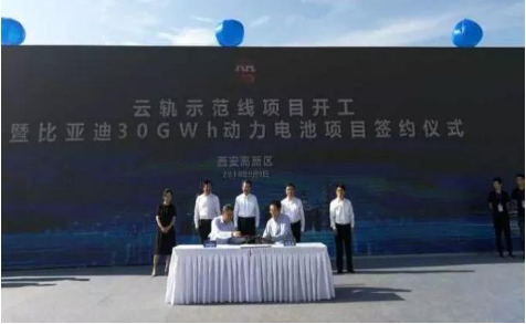 9月9日上午,西安云軌示范線項目開工暨比亞迪30GWh動力電池項目簽約儀式在西安高新區(qū)舉行。