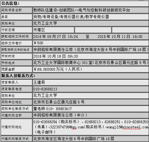 招標(biāo): 北方工業(yè)大學(xué)教師隊伍建設(shè)-創(chuàng)新團(tuán)隊--電氣與控制科研創(chuàng)新研究平臺公開招標(biāo)公告