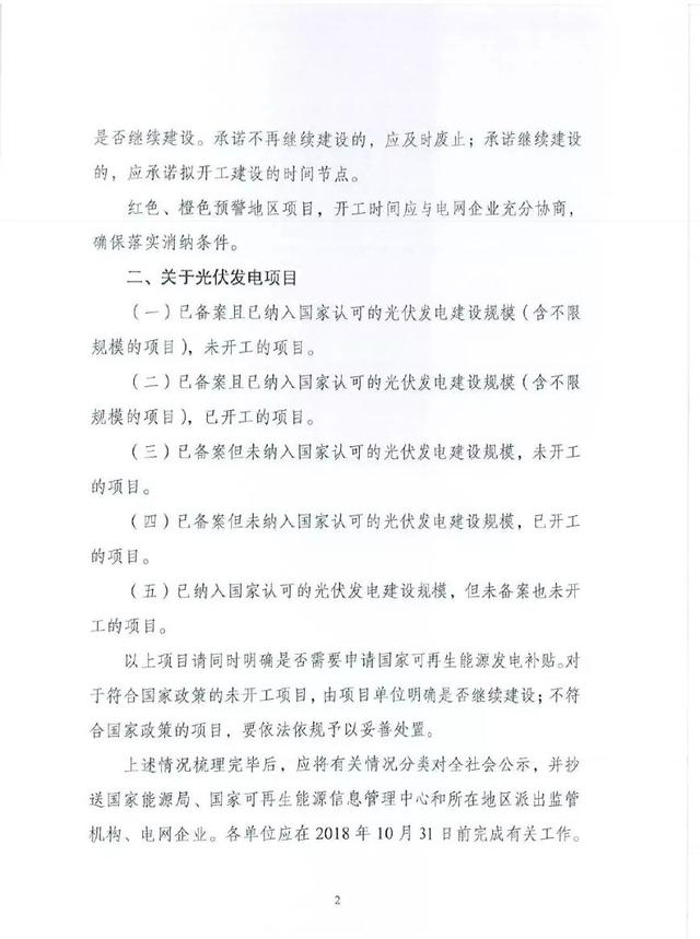 2018年9月19日,國(guó)家能源局綜合司發(fā)布關(guān)于梳理“十二五”以來(lái)風(fēng)電、光伏發(fā)電項(xiàng)目信息的通知,通知要求對(duì)不滿足要求的風(fēng)電項(xiàng)目應(yīng)及時(shí)予以廢止,已核準(zhǔn)未開工項(xiàng)目業(yè)主需承諾開工建設(shè)的時(shí)間節(jié)點(diǎn);光伏、風(fēng)電項(xiàng)目需明確是否需要申請(qǐng)國(guó)家可再生能源發(fā)電補(bǔ)貼。原文如下: