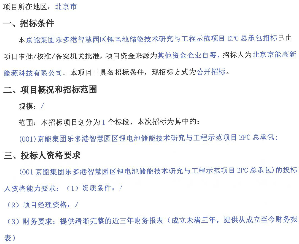招標(biāo): 京能集團(tuán)樂多港智慧園區(qū)鋰電池儲(chǔ)能技術(shù)研究與工程示范項(xiàng)目EPC總承包招標(biāo)