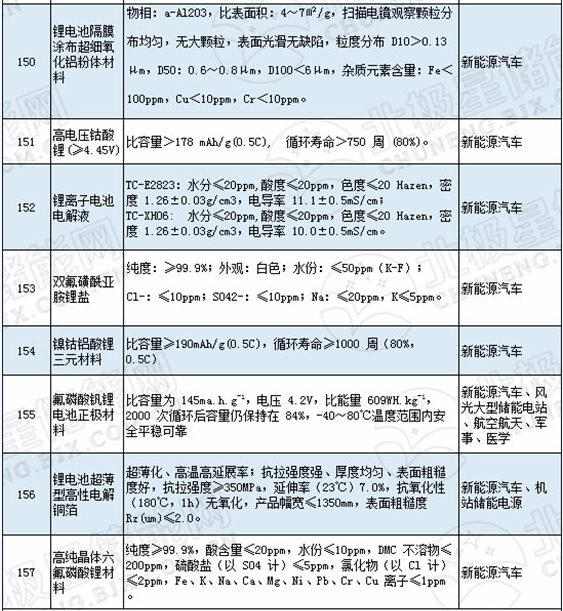 涉及儲能、新能源汽車領(lǐng)域的重點新材料應用整理如下: