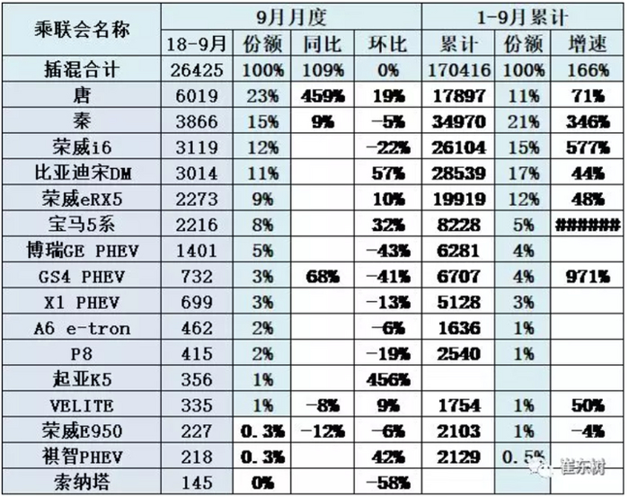 插電混動(dòng)車型板塊,比亞迪繼續(xù)保持插混的強(qiáng)勢地位,唐以6019輛的成績繼續(xù)占據(jù)榜首,同比增長459%,環(huán)比增長19%。緊隨其后的依然是比亞迪車型秦,銷量為3866輛,環(huán)比下跌5%。吉利的博瑞GE9月銷量下跌,環(huán)比下降43%,排名第七。C級車寶馬5系9月大幅增長,環(huán)比上升32%。