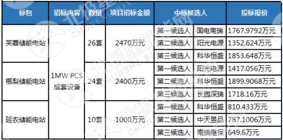 北極星儲(chǔ)能網(wǎng)獲悉,湖南長沙電池儲(chǔ)能電站一期示范工程儲(chǔ)能變流器PCS成套設(shè)備采購項(xiàng)目中標(biāo)候選人公示,國電南瑞南京控制系統(tǒng)有限公司、陽光電源股份有限公司、廈門科華恒盛股份有限公司分別為三個(gè)標(biāo)包的第一候選人,詳情如下: