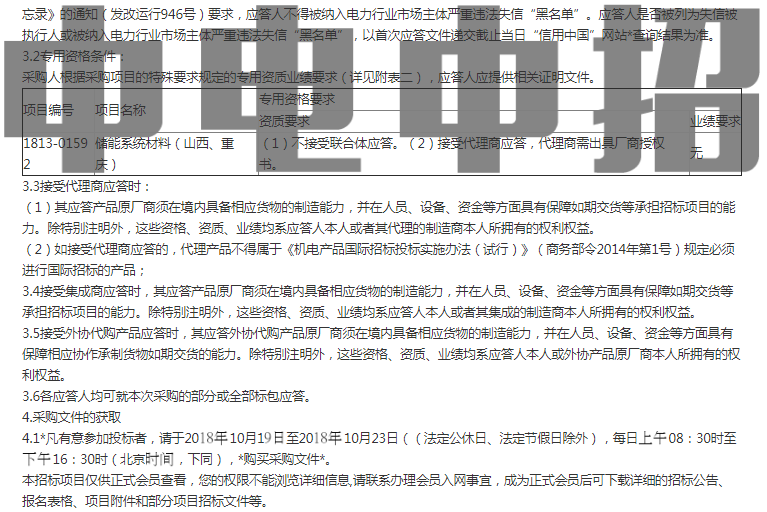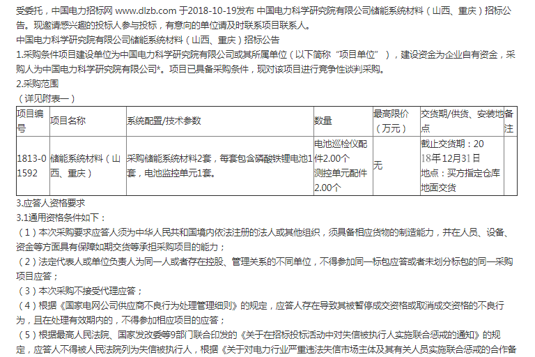 招標(biāo): 中電科院 儲能系統(tǒng)材料(山西、重慶)招標(biāo)公告