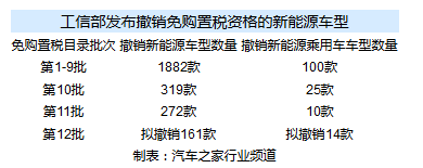 2018年4月2日,主管部門(mén)發(fā)布公告表示,對(duì)《免征車(chē)輛購(gòu)置稅的新能源汽車(chē)車(chē)型目錄》實(shí)施動(dòng)態(tài)管理,對(duì)2017年1月1日以前列入《目錄》后截至該公告發(fā)布之日無(wú)產(chǎn)量或進(jìn)口量的車(chē)型、2017年1月1日及以后列入《目錄》后12個(gè)月內(nèi)無(wú)產(chǎn)量或進(jìn)口量的車(chē)型,經(jīng)公示5個(gè)工作日無(wú)異議后,從《目錄》中予以撤銷(xiāo)。