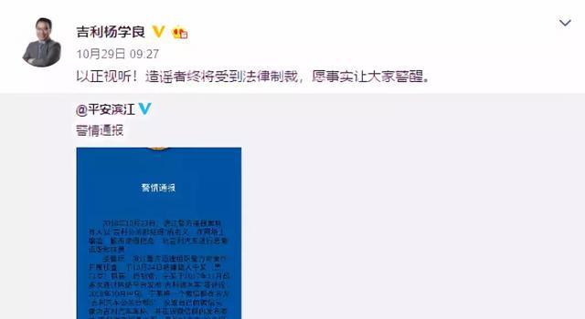 吉利副總裁楊學(xué)良對(duì)此稱,“以正視聽(tīng)!造謠者終將受到法律制裁,愿事實(shí)讓大家警醒。”