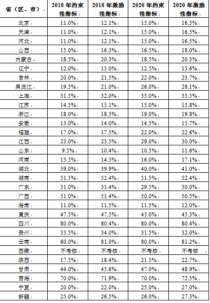 各省(區(qū)、市)可再生能源電力總量配額指標如下: