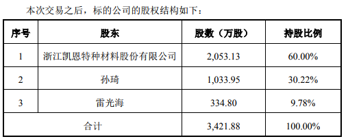 11月14日晚間,凱恩股份發(fā)布公告稱,2018年11月14日,公司與孫琦、天津合信、張磊、許鐸、莊勇、袁紹華合計6名交易對手簽署《青島乾運(yùn)高科新材料股份有限公司之股權(quán)轉(zhuǎn)讓協(xié)議》,同意支付3.4億元收購青島乾運(yùn)56.67%的股權(quán)。