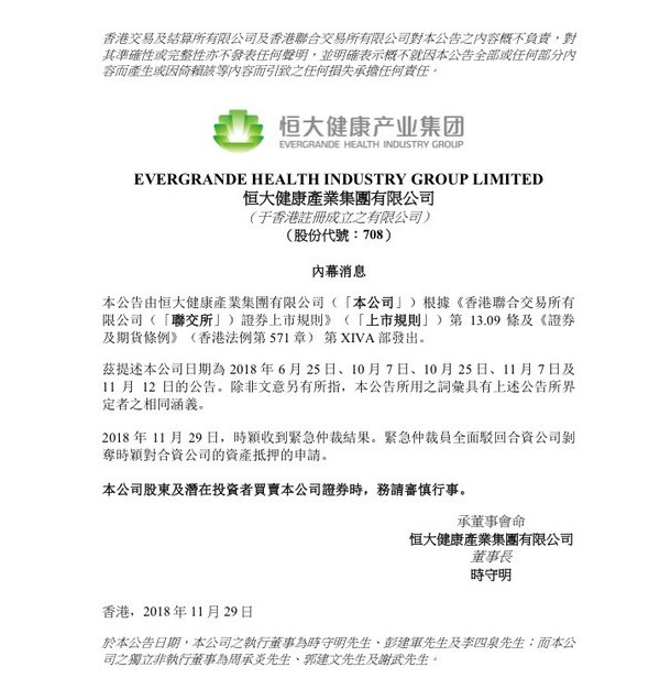今日,恒大健康對(duì)外發(fā)布公告稱(chēng),時(shí)穎收到香港國(guó)際仲裁緊急仲裁結(jié)果,緊急仲裁員全面駁回合資公司剝奪時(shí)穎對(duì)合資公司資產(chǎn)抵押的申請(qǐng)。