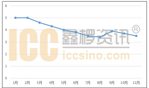 圖:2018年1月-11月國內(nèi)電解液價(jià)格走勢