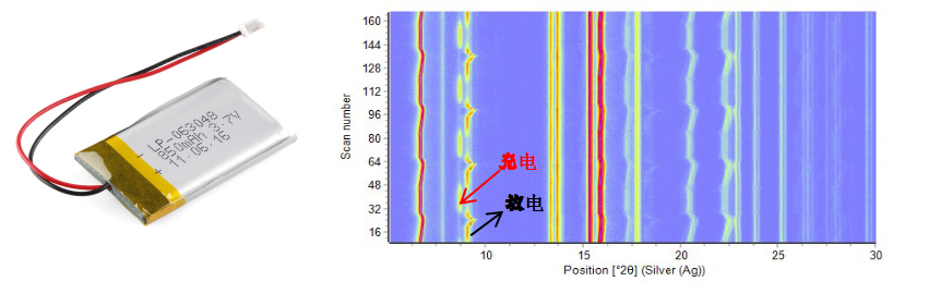 原位充放電衍射實驗可以直接研究紐扣結(jié)構(gòu)鋰離子電池材料在充放電過程中正負(fù)極材料的結(jié)構(gòu)變化和相轉(zhuǎn)化。此外,使用硬射線XRD對軟包電池進(jìn)行原位充放電實驗,從而對全電池進(jìn)行失效分析。