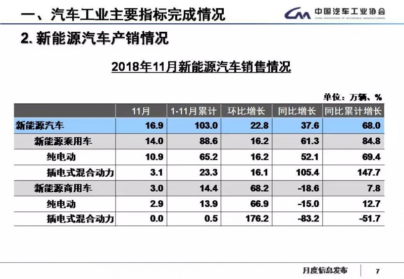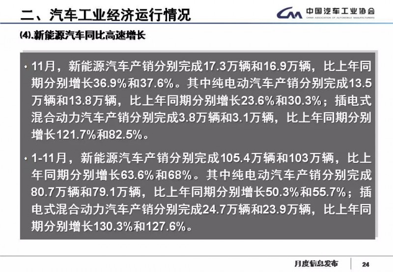新能源汽車(chē)方面:11月銷量16.9萬(wàn)輛,增長(zhǎng)37.6%;1-11月銷量103.0萬(wàn)輛,增長(zhǎng)68.0%。