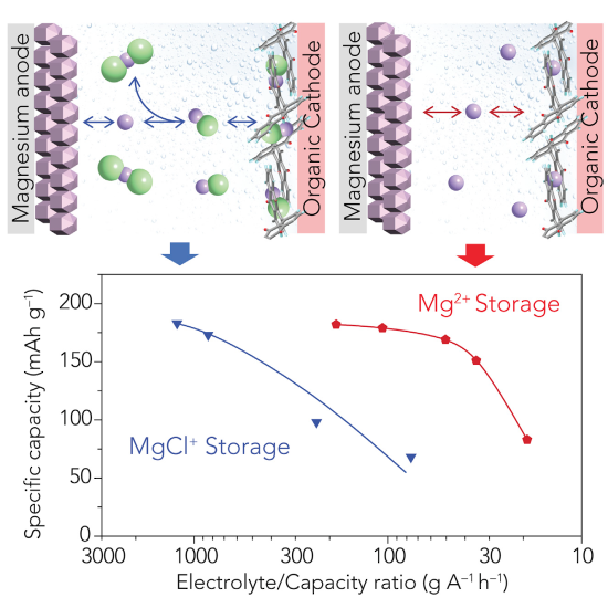 到目前為止,鎂電池使用的最佳陰極是近20年前研發(fā)的Chevrel相硫化鉬,但是其在電力和儲(chǔ)能方面無法與鋰離子電池競(jìng)爭(zhēng)。但最近的報(bào)告表明,有機(jī)陰極材料可以在室溫下提供高存儲(chǔ)容量,而且所測(cè)試的有機(jī)聚合物陰極比Chevrel相硫化鉬提供的電壓更高。