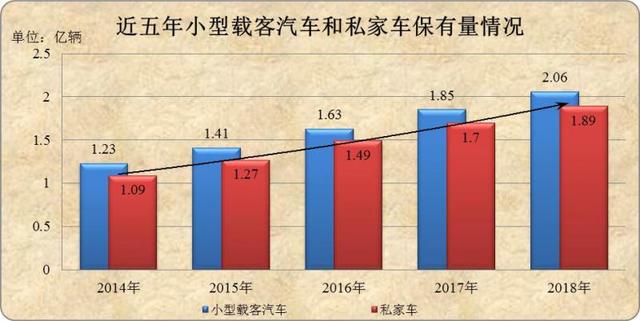 截至2018年底,全國汽車保有量達(dá)2.4億輛,比2017年增加2285萬輛,增長10.51%。從車輛類型看,小型載客汽車保有量達(dá)2.01億輛,首次突破2億輛,比2017年增加2085萬輛,增長11.56%,是汽車保有量增長的主要組成部分;私家車(私人小微型載客汽車)持續(xù)快速增長,2018年保有量達(dá)1.89億輛,近五年年均增長1952萬輛;載貨汽車保有量達(dá)2570萬輛,新注冊(cè)登記326萬輛,再創(chuàng)歷史新高。