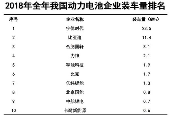 當(dāng)前,我國(guó)動(dòng)力電池產(chǎn)業(yè)共計(jì)有93家動(dòng)力電池企業(yè)(按集團(tuán)公司算)實(shí)現(xiàn)專車配套,較2017年減少9家。排名前三名企業(yè)共計(jì)生產(chǎn)38.0GWh,占比66.8%;前五名企業(yè)共計(jì)裝車42.0GWh,占比73.8%;前十名企業(yè)共計(jì)裝車47.1GWh,占比82.8%。