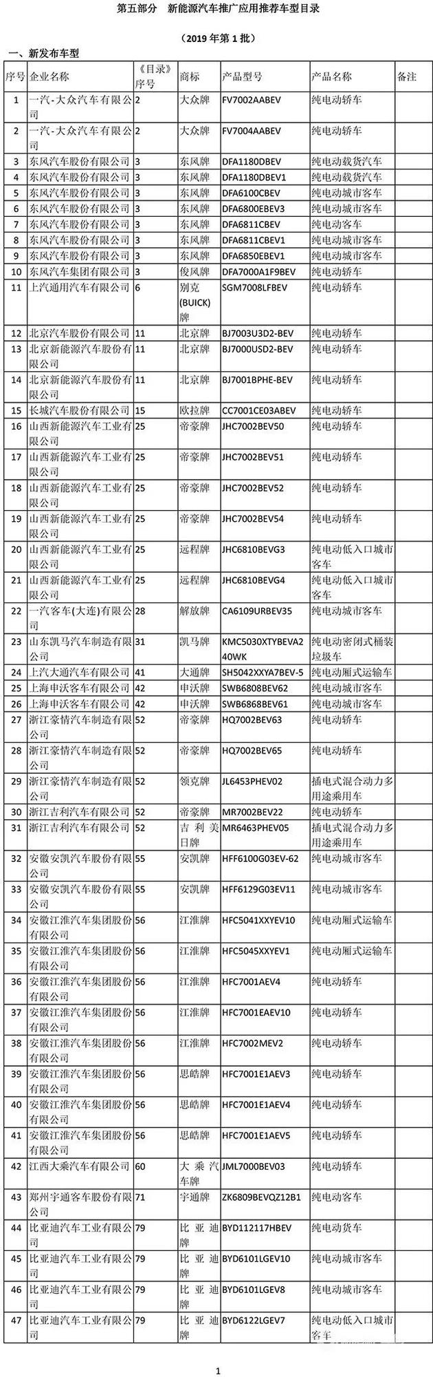 工業(yè)和信息化部近日公布2019年第一批新能源補(bǔ)貼車型。今年首批新能源推薦車型目錄中,共包括49家企業(yè)的106個(gè)新能源補(bǔ)貼車型,其中純電動(dòng)產(chǎn)品共48戶企業(yè)98個(gè)型號(hào)、插電式混合動(dòng)力產(chǎn)品共7戶企業(yè)8個(gè)型號(hào)。