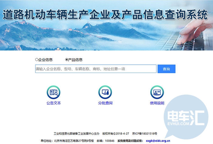為進(jìn)一步貫徹落實(shí)《政府信息公開條例》、《國(guó)務(wù)院關(guān)于加快推進(jìn)“互聯(lián)網(wǎng)+政務(wù)服務(wù)”工作的指導(dǎo)意見》等文件要求,不斷提升行政許可事項(xiàng)“道路機(jī)動(dòng)車輛生產(chǎn)企業(yè)及產(chǎn)品準(zhǔn)入管理”(以下簡(jiǎn)稱《公告》管理)信息查詢水平,便于社會(huì)公眾查詢了解道路機(jī)動(dòng)車輛生產(chǎn)企業(yè)及產(chǎn)品信息,按照工信部裝備工業(yè)司要求,我中心開發(fā)建設(shè)了“道路機(jī)動(dòng)車輛生產(chǎn)企業(yè)及產(chǎn)品信息查詢系統(tǒng)”(以下簡(jiǎn)稱“信息查詢系統(tǒng)”)。