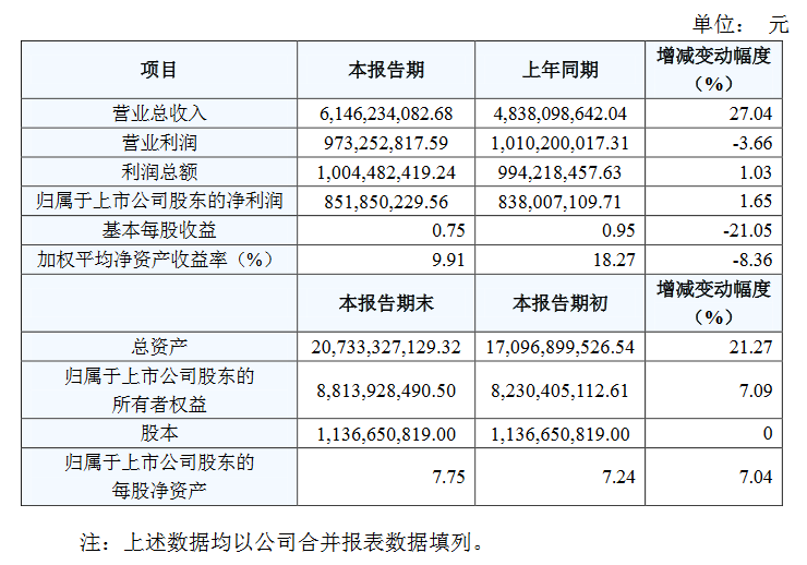 截至報(bào)告期末,公司總資產(chǎn)為20,733,327,129.32元,較報(bào)告期初增長(zhǎng)21.27%;歸屬于上市公司股東的所有者權(quán)益為8,813,928,490.50元,較報(bào)告期初增長(zhǎng)7.09%;歸屬于上市公司股東的每股凈資產(chǎn)為7.75元,較報(bào)告期初增長(zhǎng)7.04%;主要系動(dòng)力鋰電池產(chǎn)業(yè)快速發(fā)展,公司規(guī)模擴(kuò)張所致。