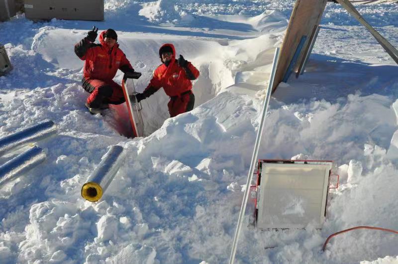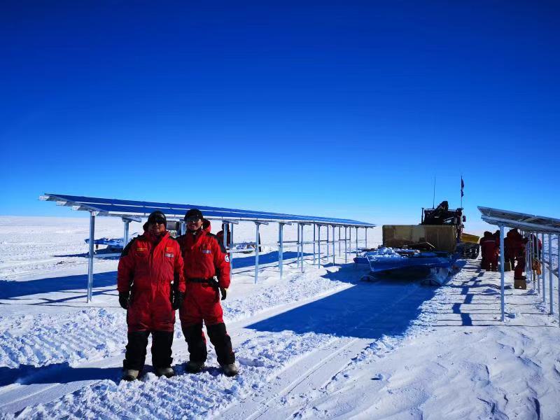 原來,中電力神子集團南極泰山站新能源系統(tǒng)建設(shè)項目組的兩位工程師正好當天凱旋,剛下飛機到公司。項目組的呂冬翔博士和鄭光恒工程師,作為中國第35次南極考察隊成員在2018年11月出征,歷盡千辛萬苦在2019年2月1日勝利完成泰山站新能源系統(tǒng)的安裝、調(diào)試并網(wǎng)運行全部任務(wù)。他們自2月3日從泰山站啟程返回,一路搭乘雪地車、雪橇、直升機、雪龍船,馬不停蹄、舟車勞頓,終于在3月11日晚上到達上海母港,接受必要的檢驗檢疫后下船飛回天津。沒想到航班提前半個多小時到達,大會臨時決定請他們參加,于是就出現(xiàn)了本文開頭的一幕。