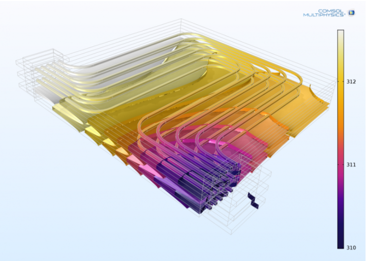 圖3:用于汽車應用的冷卻通道和電池組中的電池溫度。