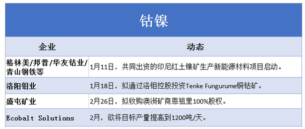 圖為2019年首季度全球主要材料企業(yè)在鈷鎳資源方向的市場(chǎng)動(dòng)態(tài)