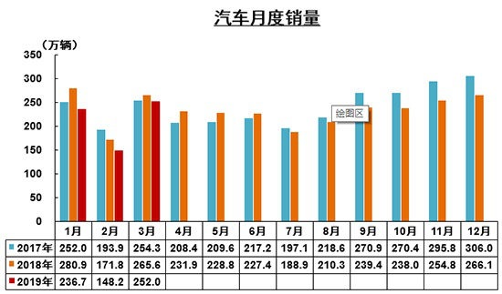 具體來看,3月,我國汽車產(chǎn)銷分別為255.8萬輛和252萬輛,環(huán)比增長81.5%和70.1%,同比下降2.7%和5.2%;1-3月,汽車產(chǎn)銷分別完成633.6萬輛和637.2萬輛,比上年同期分別下降9.8%和11.3%,降幅比1-2月分別縮小4.3和3.6個百分點。
