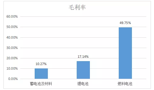 值得注意的是,燃料電池業(yè)務以2.83%的業(yè)務占比,奉獻了11.6%的利潤,原因是燃料電池業(yè)務的毛利率達到了49.57%,遠超蓄電池及鋰電池業(yè)務。