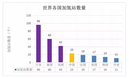 全球擁有加氫站的國家以及數(shù)量分別是日本(96座)、德國(60座)、美國(42座)、中國(23座)、法國(19座)、英國(17座)、韓國(14座)、丹麥(11座)。日本、德國和美國加氫站共有198座,占全球總數(shù)的54%。