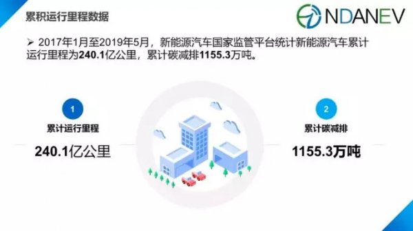 2017年1月至2019年5月,新能源汽車?yán)塾?jì)運(yùn)行里程為240.1億公里,累計(jì)碳減排1155.3萬噸。其中,純電動(dòng)汽車運(yùn)行里程為200億公里,純電動(dòng)汽車行駛里程占比83%。