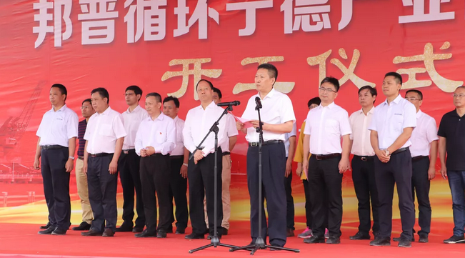 6月12日,邦普循環(huán)寧德產(chǎn)業(yè)園項目正式開工。寧德市委副書記林文芳、福鼎市委書記劉振輝、福鼎市長袁華軍及廣東邦普循環(huán)科技有限公司總裁李長東等出席開工儀式。