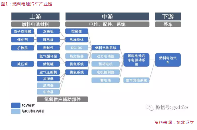 燃料電池系統(tǒng)是燃料電池汽車最為關(guān)鍵的部件,與鋰電池主要的區(qū)別在于燃料電池是一個能量轉(zhuǎn)換裝置,而鋰離子動力電池是作為能量儲存裝置。在燃料電池系統(tǒng)里,主要部件包括電堆、空壓機(jī)、加濕器、氫氣循環(huán)泵、高壓氫瓶等等。與國際知名車企相比,如豐田、通用、本田等目前已經(jīng)完成了燃料電池汽車的基本性能研發(fā)階段,并解決了若干關(guān)鍵技術(shù)問題,其整車性能、安全性、續(xù)航能力等各方面均與傳統(tǒng)汽油車不相上下。而國內(nèi)企業(yè)不管在技術(shù)研發(fā)和財力方面,仍處于劣勢狀態(tài),未來隨著政策加碼推動下,國產(chǎn)替代有望加速進(jìn)行。下面筆者選取幾個較為核心的相關(guān)零部件及可關(guān)注的上市公司進(jìn)行介紹:?。?)電堆