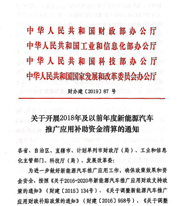 財(cái)政部、工業(yè)和信息化部、科技部、國家發(fā)展和改革委員會(huì)7月26日發(fā)布《關(guān)于開展2018年及以前年度新能源汽車推廣應(yīng)用補(bǔ)助資金清算的通知》,對2018年及以前年度新能源汽車推廣應(yīng)用補(bǔ)助資金進(jìn)行清算。