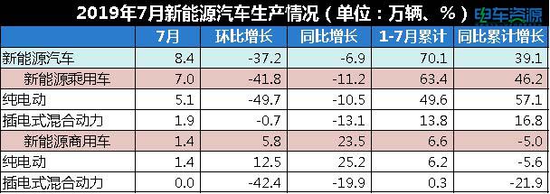 產(chǎn)量方面,2019年7月,新能源乘用車產(chǎn)量為7萬(wàn)輛,其中純電動(dòng)乘用車5.1萬(wàn)輛,插電式混合動(dòng)力乘用車1.9萬(wàn)輛;新能源商用車產(chǎn)量為1.4萬(wàn)輛,其中純電動(dòng)商用車1.4萬(wàn)輛,插電式混合動(dòng)力商用車0輛。