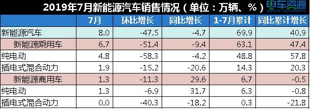 銷量方面,2019年7月,新能源乘用車銷量為6.7萬(wàn)輛,其中純電動(dòng)乘用車4.8萬(wàn)輛,插電式混合動(dòng)力乘用車1.9萬(wàn)輛;新能源商用車的銷量為1.3萬(wàn)輛,其中純電動(dòng)商用車1.3萬(wàn)輛,插電式混合動(dòng)力商用車0輛。