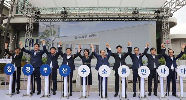 儀式在釜山氫燃料補(bǔ)給站舉行。包括現(xiàn)代汽車在內(nèi),大約有100人參加了會(huì)議。