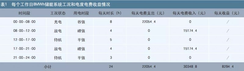 (2)系統(tǒng)運維成本。系統(tǒng)的運維成本包括檢修費用、備品備件購置費、保險費以及管理費用,本次研究視為一類費用支出,按已有研究結(jié)果數(shù)據(jù),每MWh年需約4.4萬元,則8MWh儲能系統(tǒng)的該項支出年約35.2萬元。