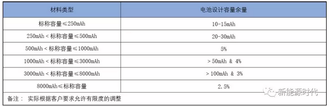 電池設(shè)計容量余量:因為操作、設(shè)備等原因,同一批次的電池容量會呈正態(tài)分布,為保證整個容量分布基本處于標(biāo)稱容量以上,需要設(shè)定設(shè)計余量。
