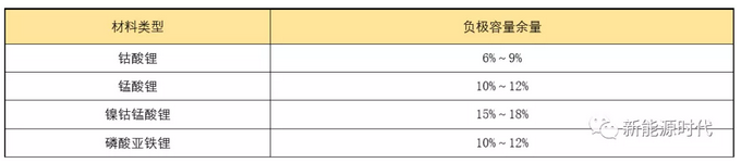 負(fù)極容量余量:因為負(fù)極從開始形成SEI膜到循環(huán)的修復(fù)SEI等反應(yīng),需要不斷消耗鋰離子,所以負(fù)極需要設(shè)定一定的損耗余量。