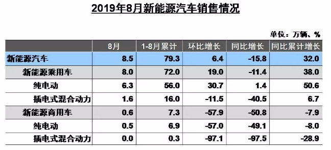 ·新能源汽車:8月銷量8.5萬輛,下降15.8%;1-8月銷量79.3萬輛,增長32.0%