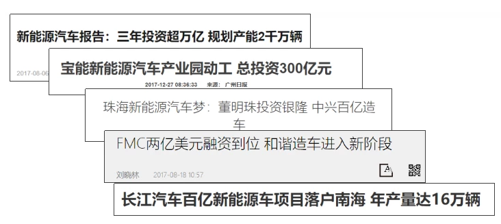 一邊是陰云籠罩的傳統(tǒng)汽車(chē),一邊是熱火朝天的新能源汽車(chē),很多人希望類(lèi)似蘋(píng)果取代諾基亞一樣的經(jīng)典故事能在汽車(chē)行業(yè)再次重演。據(jù)NE時(shí)代統(tǒng)計(jì),在2017年底,有近80家企業(yè)宣稱(chēng)要投資進(jìn)入新能源汽車(chē),其中規(guī)劃投資金額4000多億,新能源汽車(chē)產(chǎn)能規(guī)劃超過(guò)1000萬(wàn)。