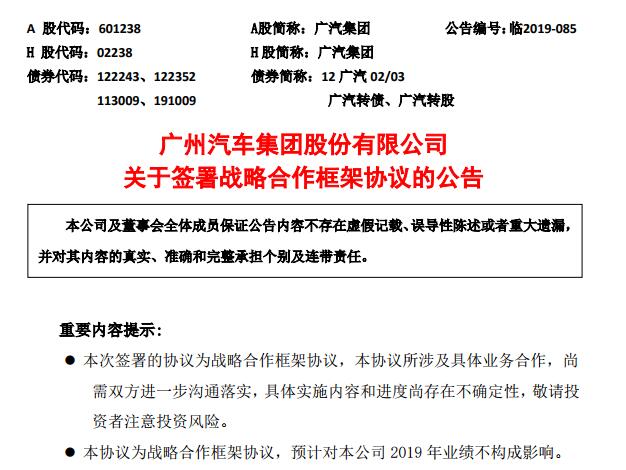 12月23日,廣汽集團發(fā)布公告稱,公司與上汽集團簽訂《戰(zhàn)略合作框架協(xié)議》。