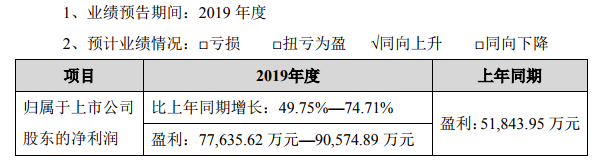 近日,恩捷股份(002812)披露2019年度業(yè)績(jī)預(yù)告,公司預(yù)計(jì)2019年盈利77,635.62萬(wàn)元-90,574.89萬(wàn)元,比上年同期增長(zhǎng)49.75%-74.71%。