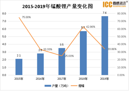 根據(jù)鑫欏資訊統(tǒng)計,以上企業(yè)2019年錳酸鋰總產(chǎn)量達(dá)到7.64萬噸,同比增長33.86%,增速較2018年有所下降。2019年錳酸鋰產(chǎn)量超5000噸的企業(yè)主要有新鄉(xiāng)弘力、中信大錳、河北強能鋰電、無錫晶石以及貴州丕丕丕。第二梯隊主要有多氟多、湖南海利、青島乾運、新鄉(xiāng)天茂、甘肅大象、桑頓新能源、山東科源,年產(chǎn)量在3000-5000噸。