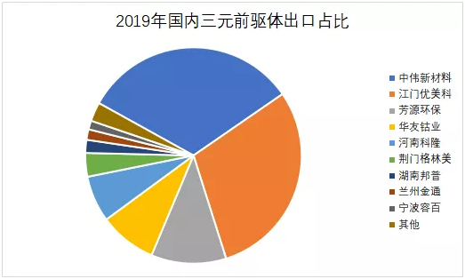 中國是全球三元前驅體的重要生產基地,據鑫欏資訊的統(tǒng)計數據顯示,2019年,國內三元前驅體總產量約為27.8萬噸,其中三元前驅體出口量為7.65萬噸,占國內三元前驅體總產量的27.5%。如果算上部分二元前驅體材料,那么出口占比會超過30%。