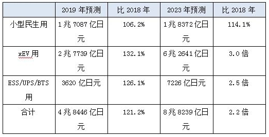 據(jù)富士經(jīng)濟(jì)預(yù)測(cè),鋰離子梯次利用電池世界市場(chǎng)在2020年將突破5兆日元(約合人民幣3335億5千萬),2023年將達(dá)到8兆8239億日元(約合人民幣5869億6千萬),其中xEV(電動(dòng)車/混合動(dòng)力電池)將達(dá)到6兆2641億日元(約合人民幣4202億1千萬)。